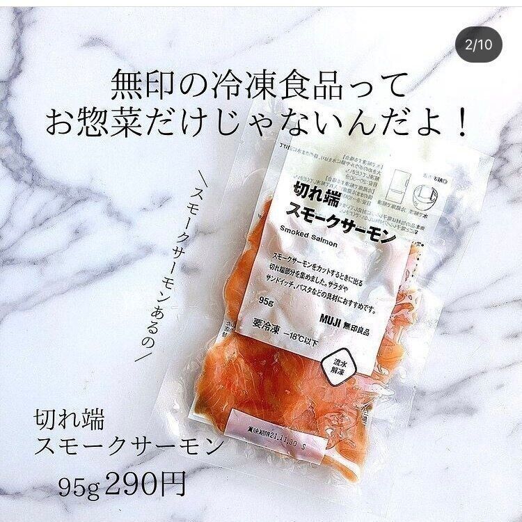 無印良品の冷凍食品で、お手ごろ価格で購入後できると人気のスモークサーモンは、スモークサーモンをカットしたときに出る切れ端を集めたものを冷凍にして販売しています。