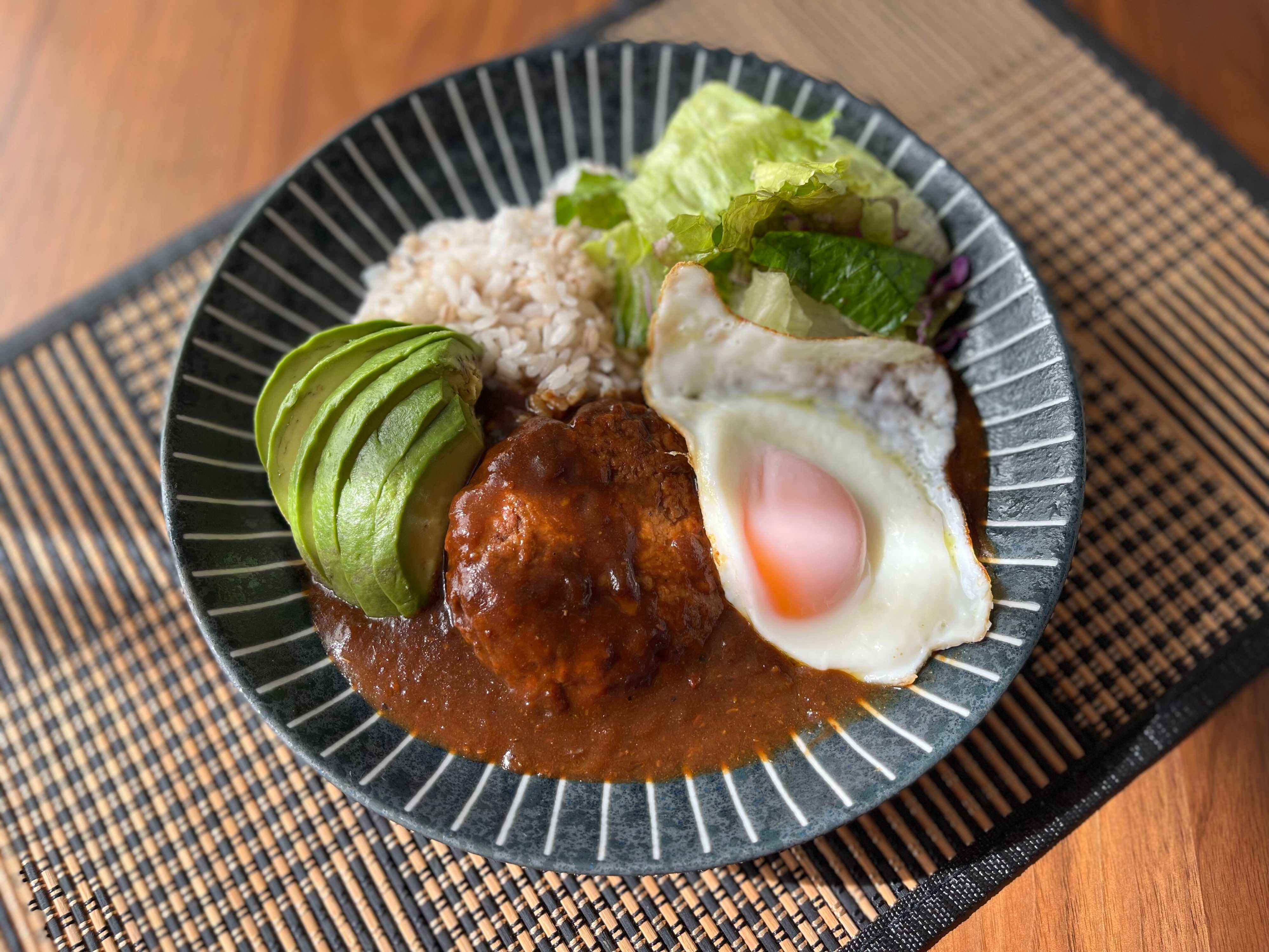 因みに、ロコモコを意識して添えたアボカドとゆで卵との相性は…正直イマイチでした。