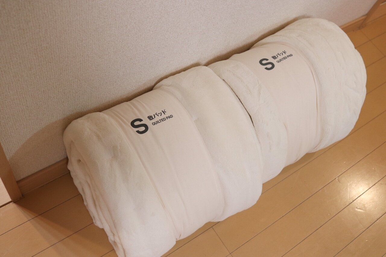 サイズカラーともに4種類の展開で、サイズはスモール、シングル、セミダブル、ダブル。カラーはダークグレー、ダークベージュ、グレーベージュ、アイボリー。わが家は白で統一しているので、あたたかみのあるアイボリーを購入しました。生地はやわらかく、なめらかな肌触り。触り心地がとってもいいんです!ずっと手で撫でていたいような、そんな気持ちよさ。気になる方は、ぜひ店頭でチェックしてみてください。ちなみに装着時には四隅にゴムがついているので、敷パッドがずれることはありませんので、ご安心を!寒さに震えながら入っていたベッドが、この敷パッドのおかげで毎日快適に眠れるようになりました。もっと早く買えばよかった商品です。