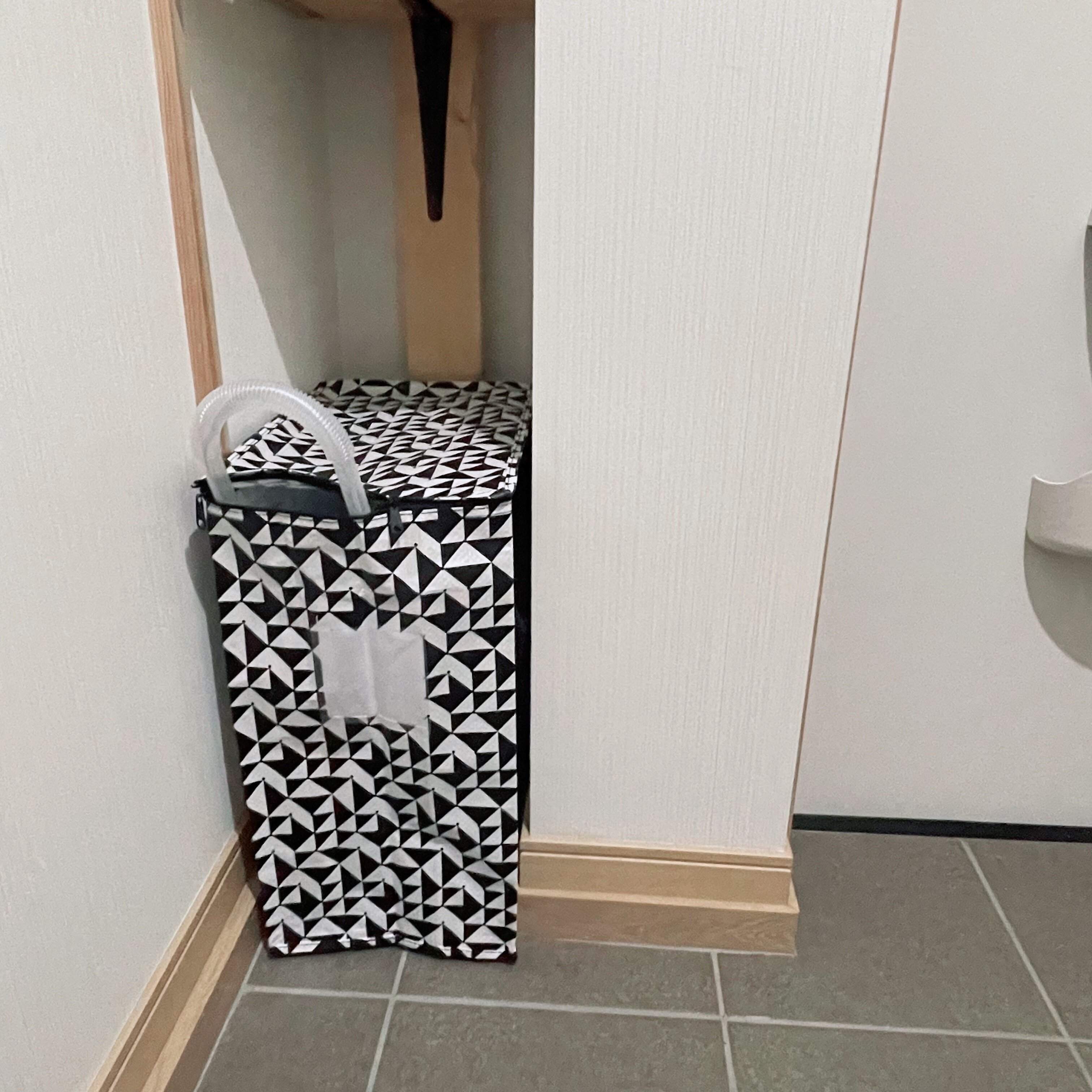 灯油ポンプを固定するタイプにしているので多少袋から飛び出てしまいましたが、本体は見えないので許容範囲です。