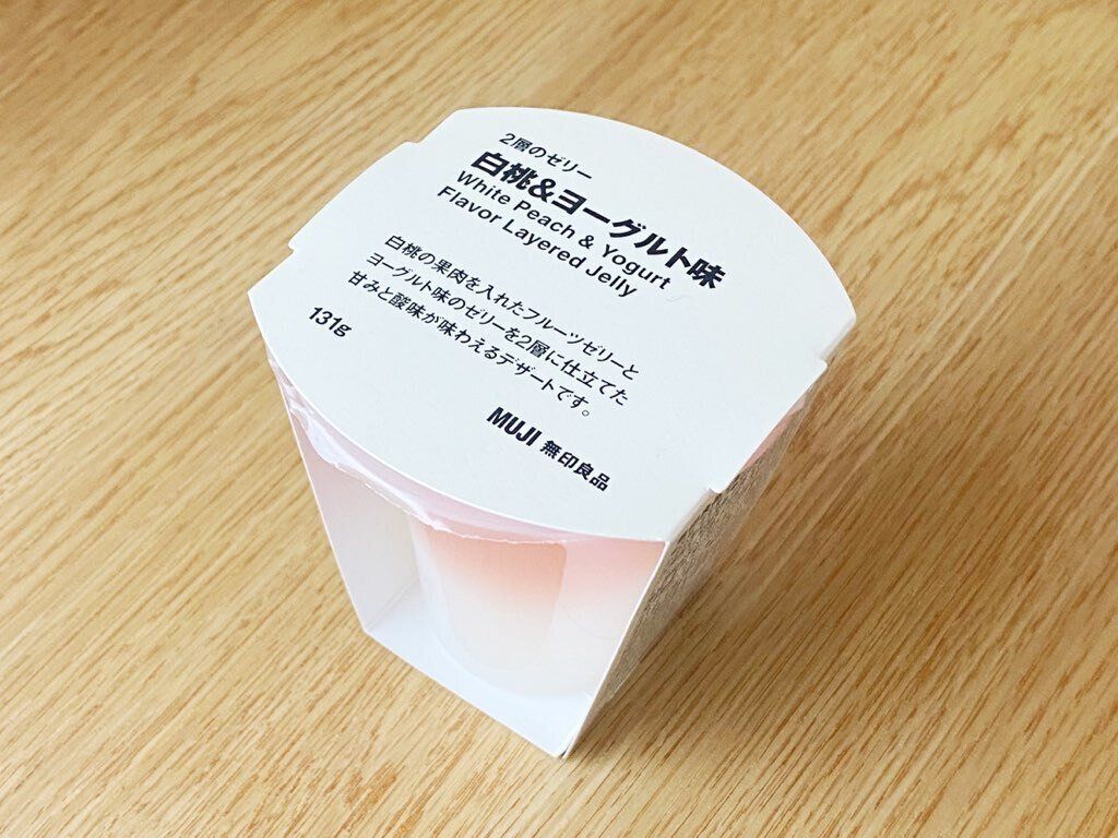 白桃の果肉が入った桃味のゼリーとヨーグルト味のゼリーを2層に重ねたカップ入りスイーツです。ゼリー部には桃ピューレと濃縮桃果汁が使用されています。