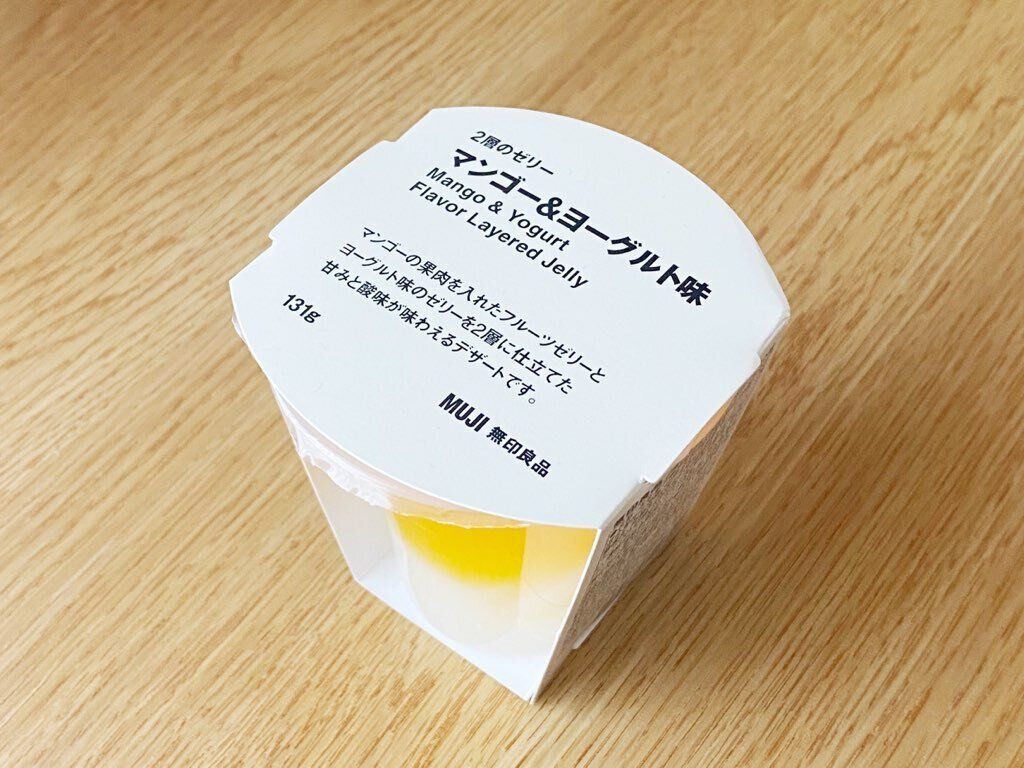 マンゴーの果肉が入ったマンゴー味のゼリーとヨーグルト味のゼリーを2層に重ねたカップ入りスイーツです。マンゴーゼリー部にはマンゴーピューレと濃縮オレンジ果汁が使用されています。