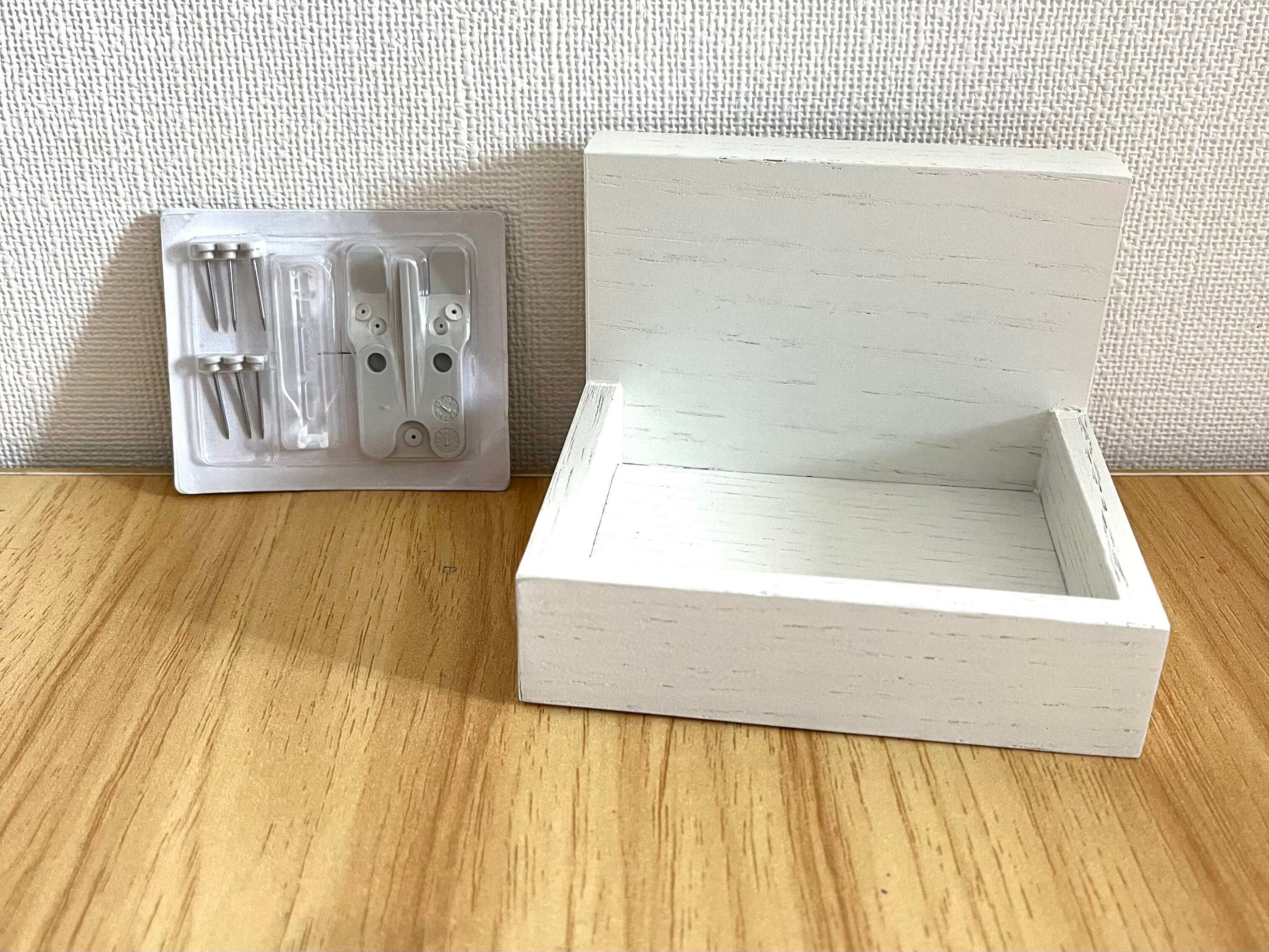 なかには、本体・専用フック・専用固定ピン・脱着工具が入っています。