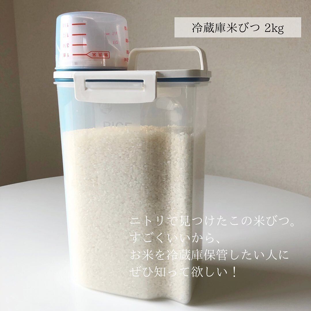 公式サイトによるとパッキンとロック、ハンドル、計量ができるカップも付いた冷蔵庫米びつ 。縦置き・横置きもできるので、収納スペースを有効活用したいかたにおすすめです。599円という手頃な価格でゲットできるのも◎。green_apple.lifeさんは「お米を冷蔵庫管理したい人にぜひ知って欲しい!」とコメントしています。