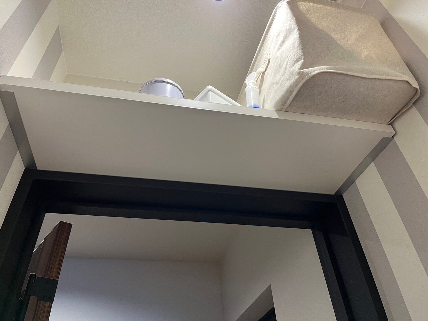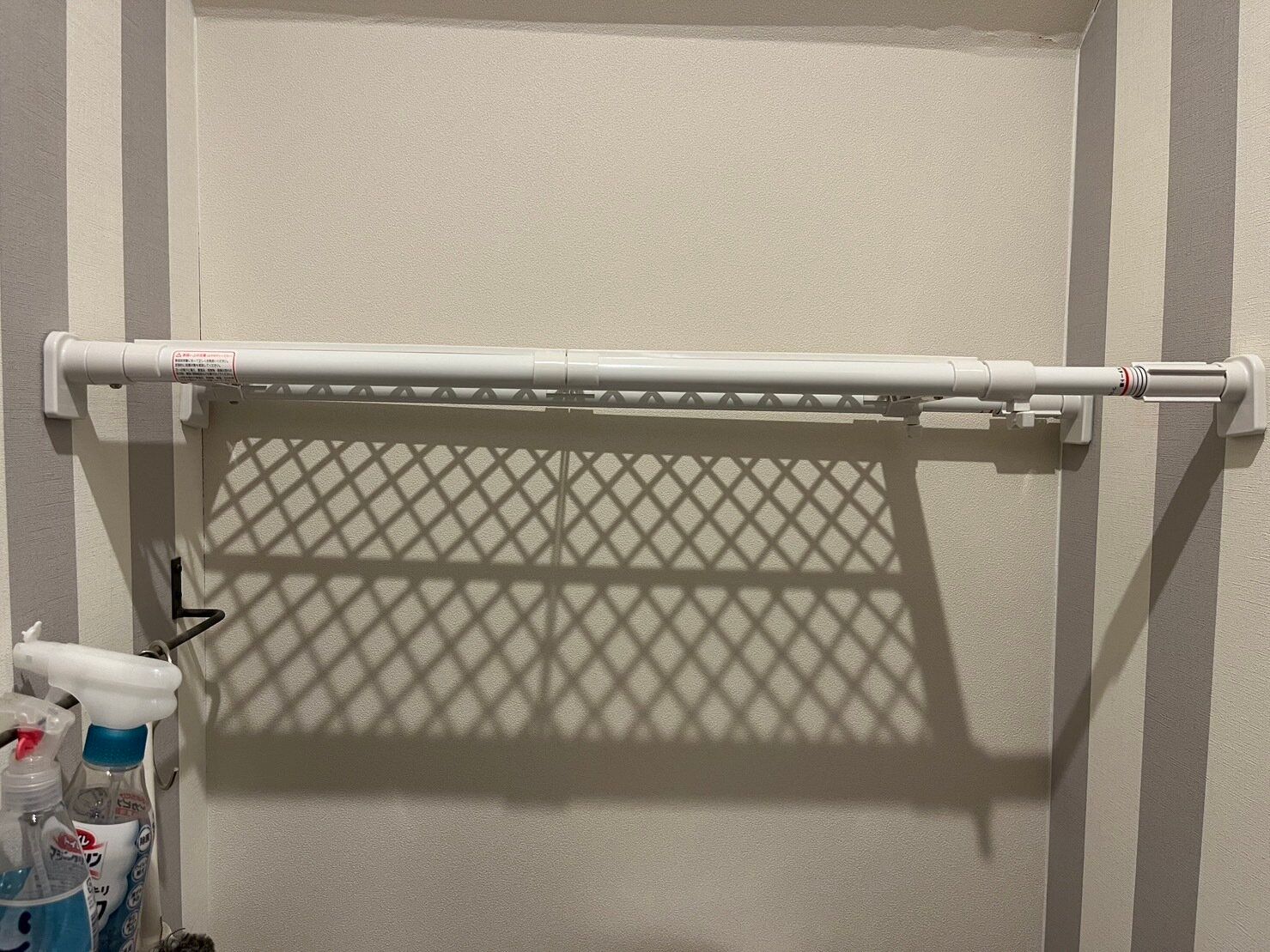 最近では頻繁に棚が落ちてきてしまっていたので築6年目にしてやっとちゃんと棚をつけようと決意しました。ニトリでつっぱり棚という商品を買ってきたのでさっそく取りつけたいと思います。