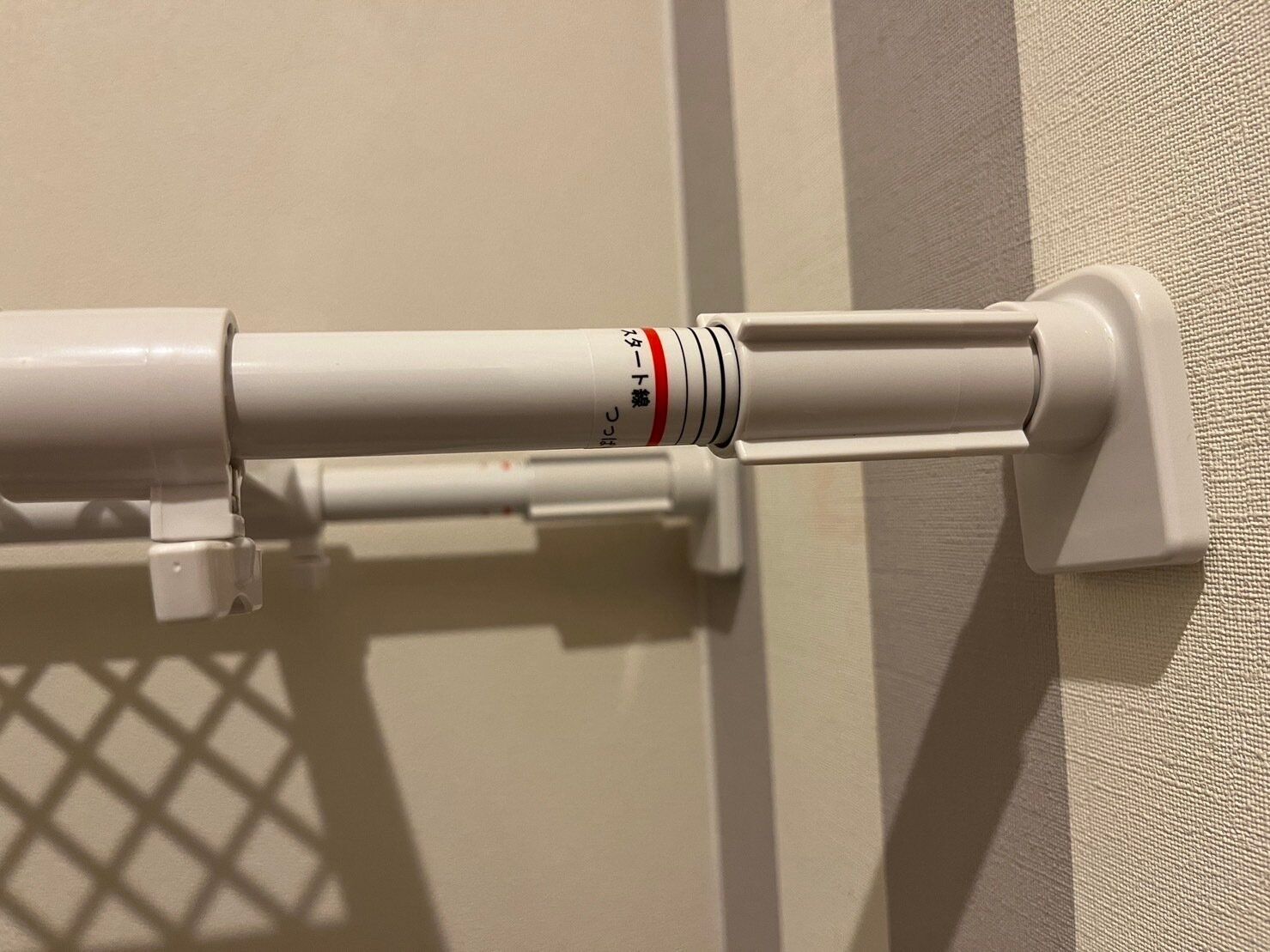 長さ固定ねじを数回まわして仮止めし、壁いっぱいに調整パイプを引き出します。次に、長さ固定ねじをしっかりまわして締めます。