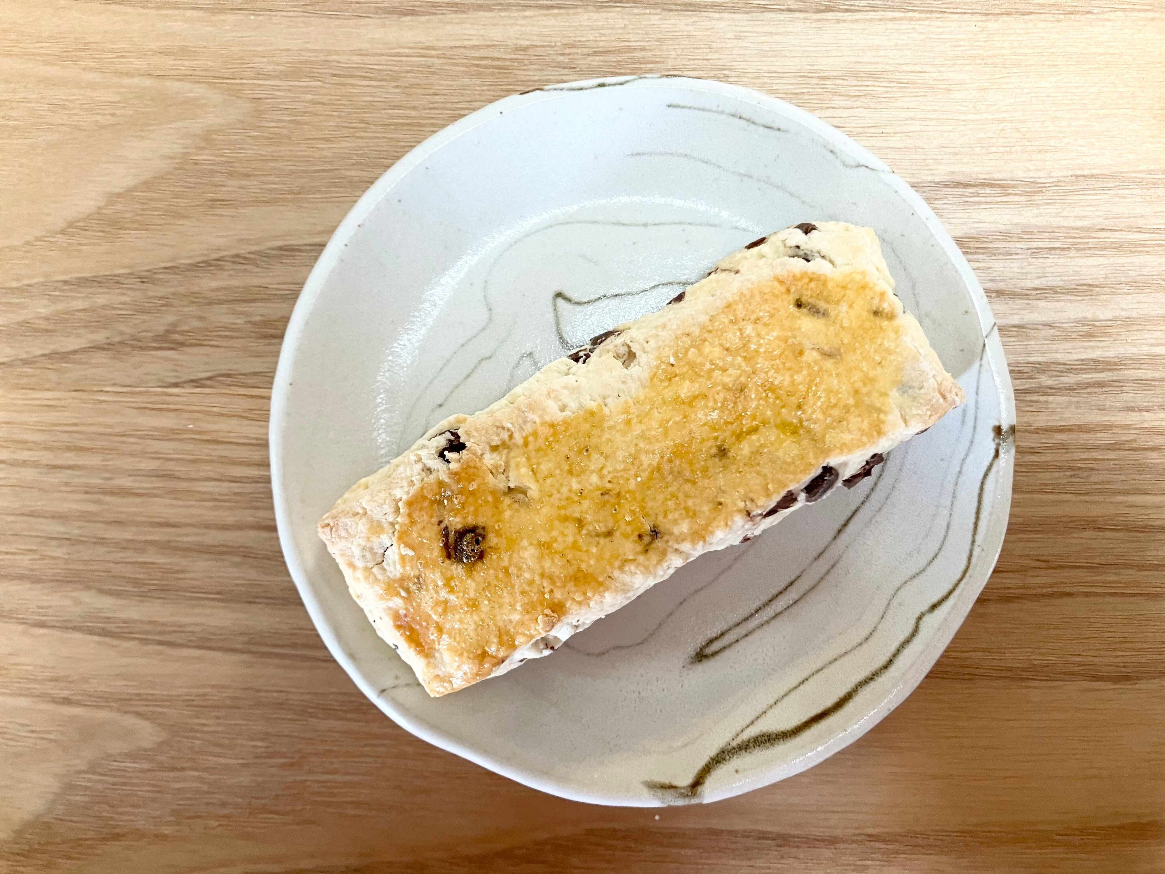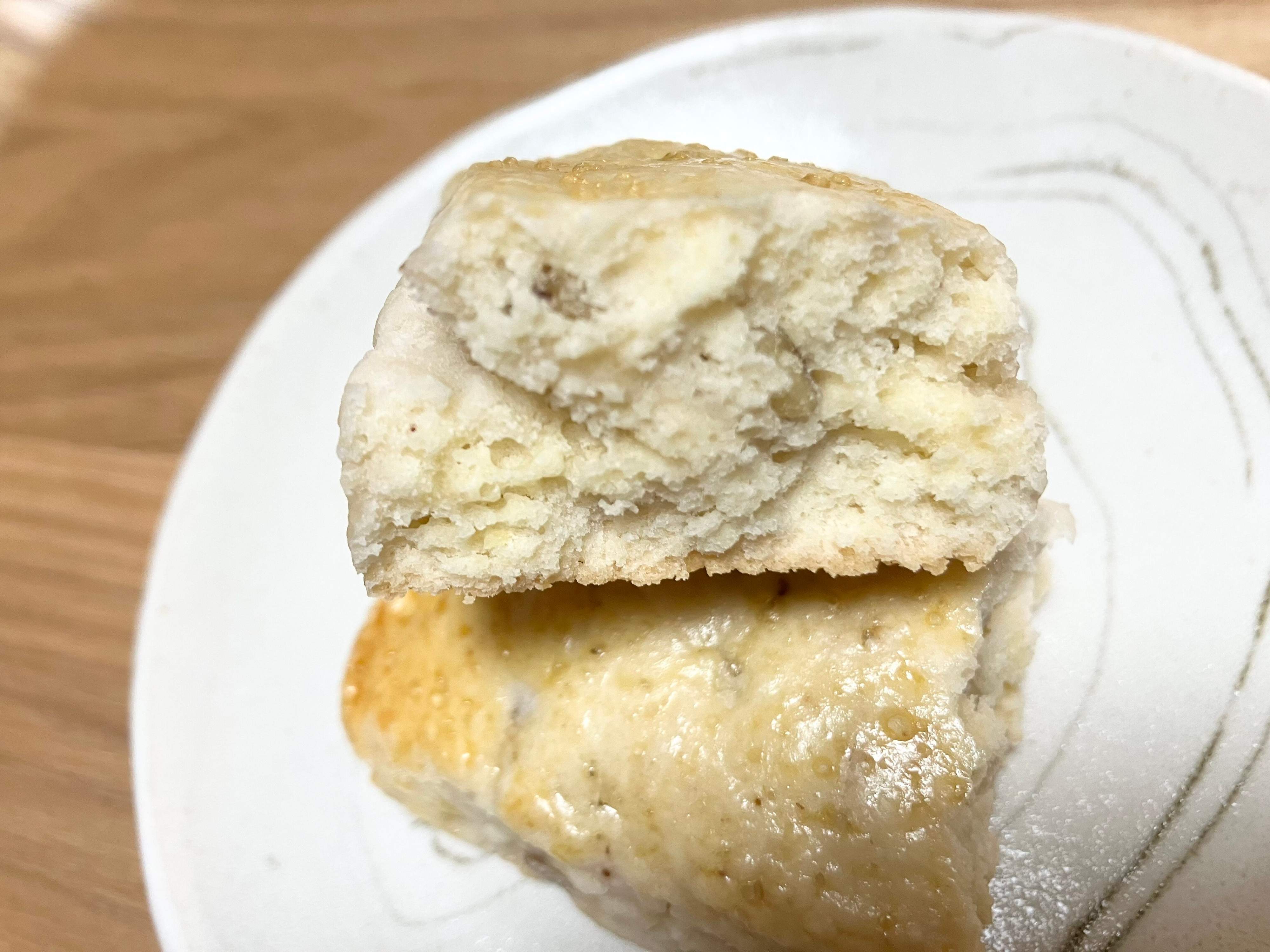 表面のはちみつと思われる部分に光沢がありおいしそうです。くるみもはちみつも似たような感じの色なので、一見プレーンのスコーンのようにも見えます。