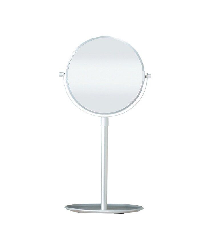 高さが調整できるアルミコンパクトミラーは台座がトレーになっていて、リップや細々したメイク道具が置ける優れもの。