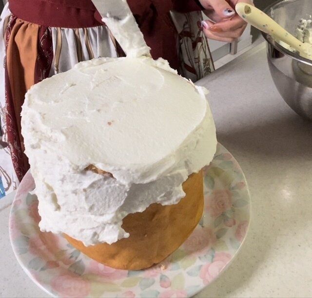 今回はシンプルに泡立てた生クリームを全体に塗っていきます。