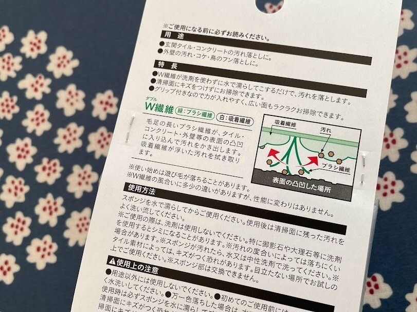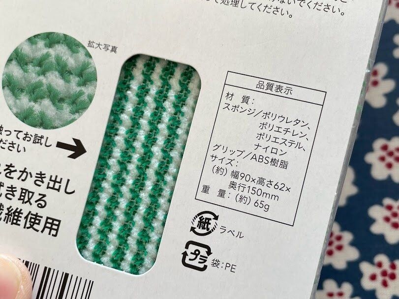 緑の繊維が凸凹に入り込んで汚れをかき出してくれて、白の繊維が浮いた汚れを拭き取ってくれるので、洗剤要らずなんです!