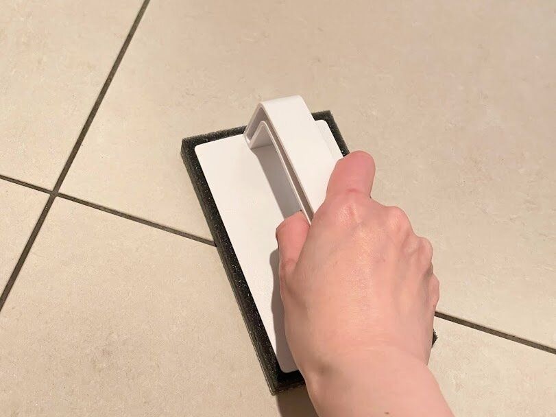 ほうきではいた後、スポンジを濡らしてゴシゴシすると、力を入れる必要なく汚れがラクに落ちてくれます。洗剤を使用すると水拭きが必要になりますが、これは水だけなので汚れが落ちたらお掃除完了!