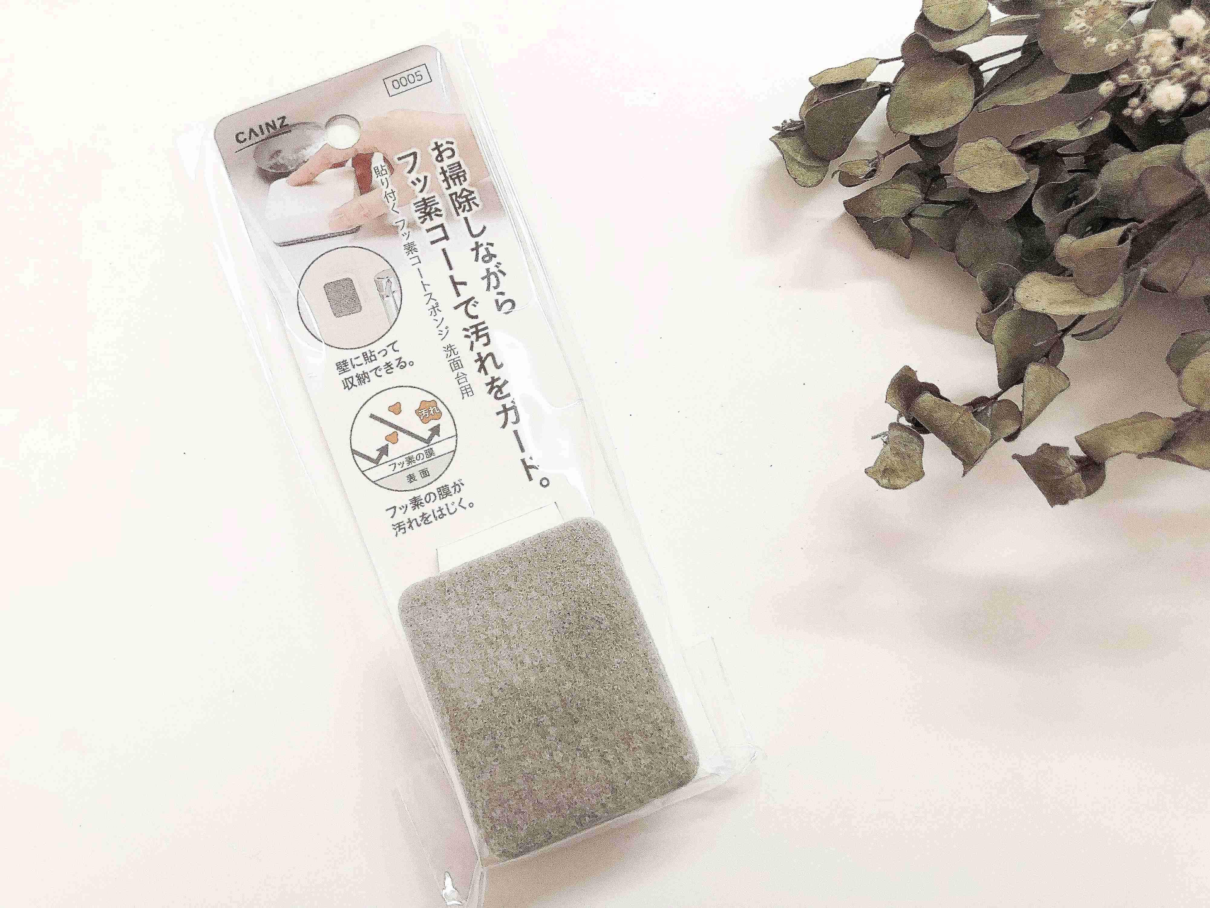 こちらのスポンジのグレーのアクリル不織布面には、フッ素(白い溶剤)が含浸されています。