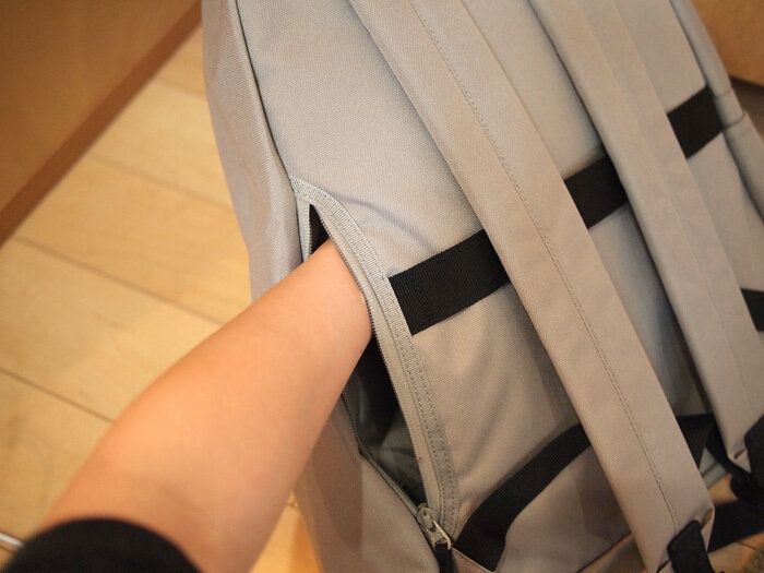 これ!私は子どもを産んだばかりのとき、この背面ポケットがあるか否かを1番気にしていました。なかなか条件を満たしてくれるリュックサックはなくて…しかしこちらには背面ポケットがついています!背面ポケット、私はお財布を入れておいて、会計時サッと取り出してつかってましたね。