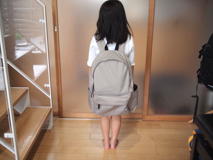 娘の小学校に持っていく荷物を入れて背負ってみましたが、なるほど肩ひもが広くて軽く感じる、というか確かに肩への負担が軽い!