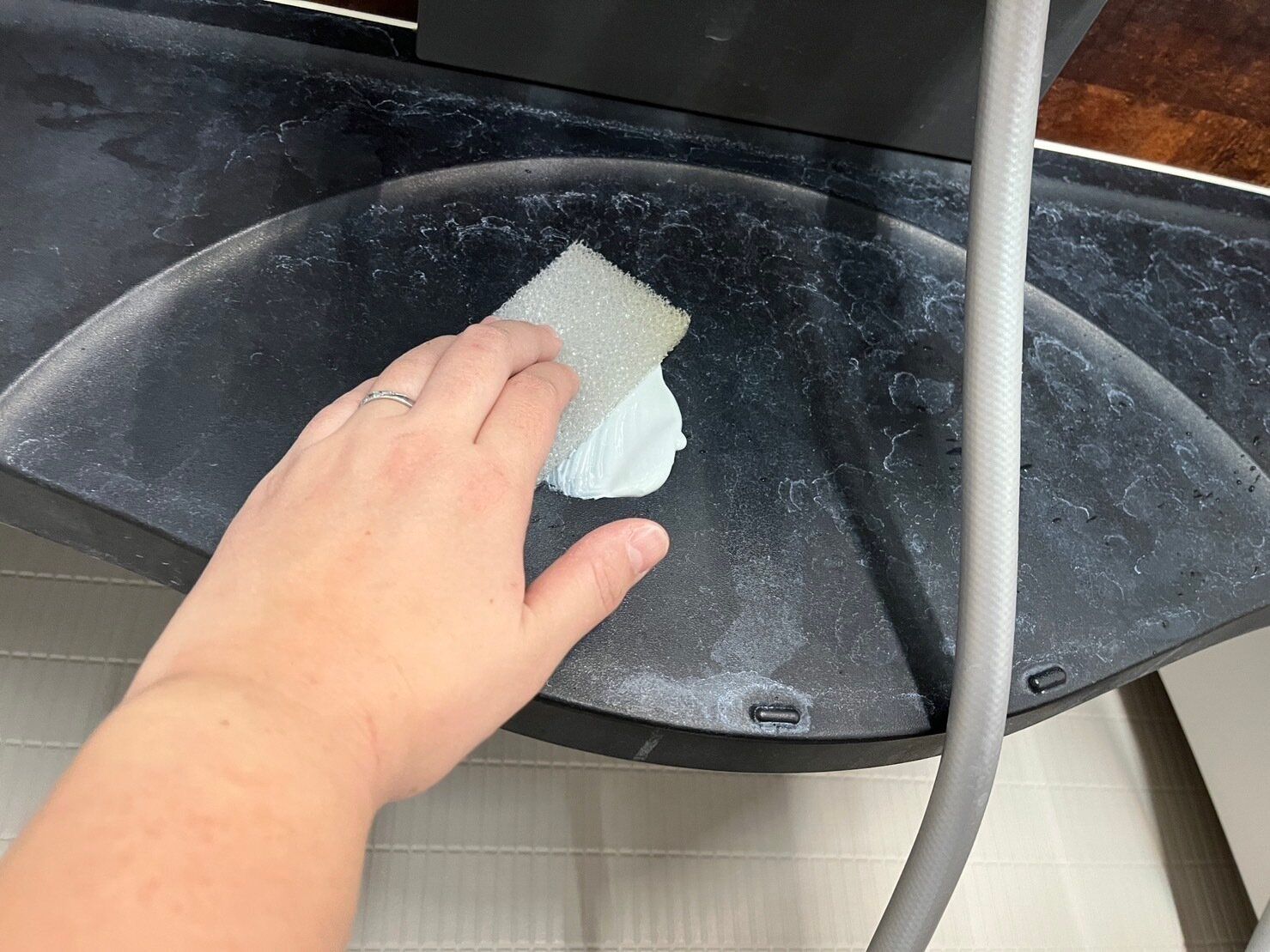 クレンザーなのできちんと水で流さないと残った洗剤が白くなってしまうので注意してくださいね。