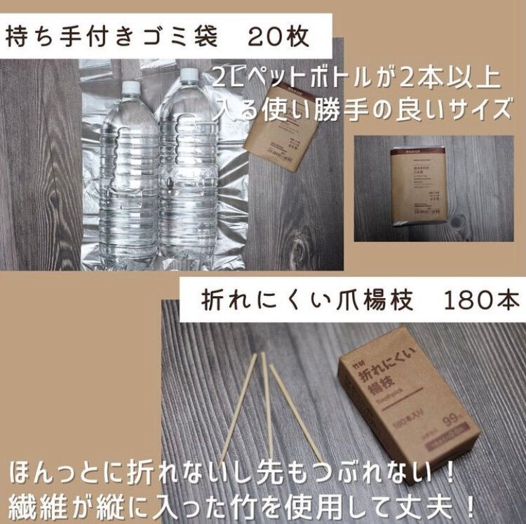 ビニール袋が有料化になってから、いざという時にビニール袋がない!なんていうこともあるかと思います。そんな状況を防ぐことができるアイテムが「持ち手付きごみ袋45号(約14L用)20枚入」(99円)。2Lのペットボトルを2本入れても余裕があるサイズなので使い道も多いはず!自宅だけでなく、車の中に常備して置いてもよさそうですね。