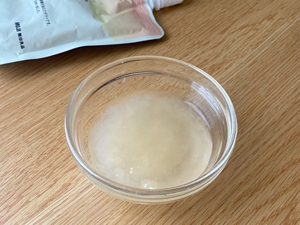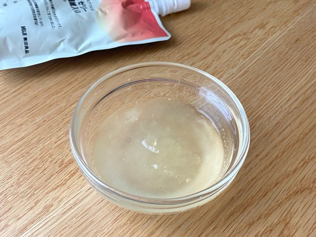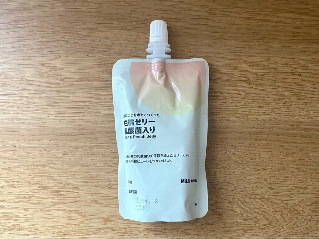 こちらも無印のお菓子コーナーで販売されている「肌のことを考えてつくった 白桃ゼリー 乳酸菌入り」。国産の白桃ピューレを使用してつくったゼリードリンクです。お米由来の乳酸菌500億個が入っており、おいしく気軽に摂取することができます。