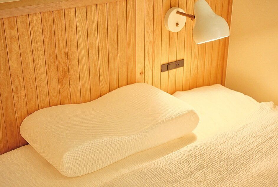 寝返りによって常に変化する寝姿勢をスムーズに受け止めるまくら。高さや硬さにこだわった構造・デザインに。