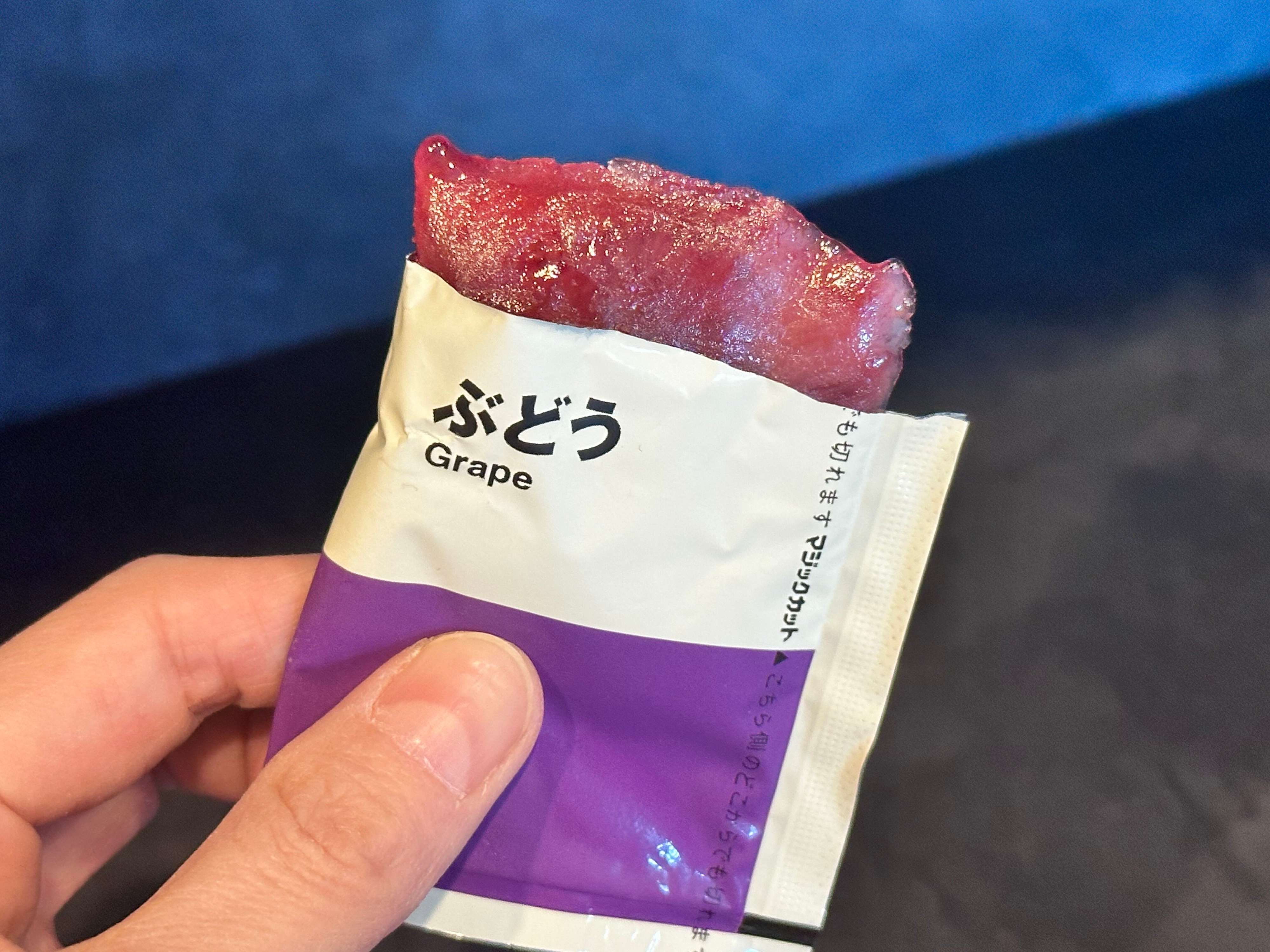 子どもでも食べやすい大きさのゼリーで、開封も簡単にできるようになっています。冷やして食べてもおいしいんですが、凍らせると固めのシャリっとした食感が楽しめるようになっていますよ。