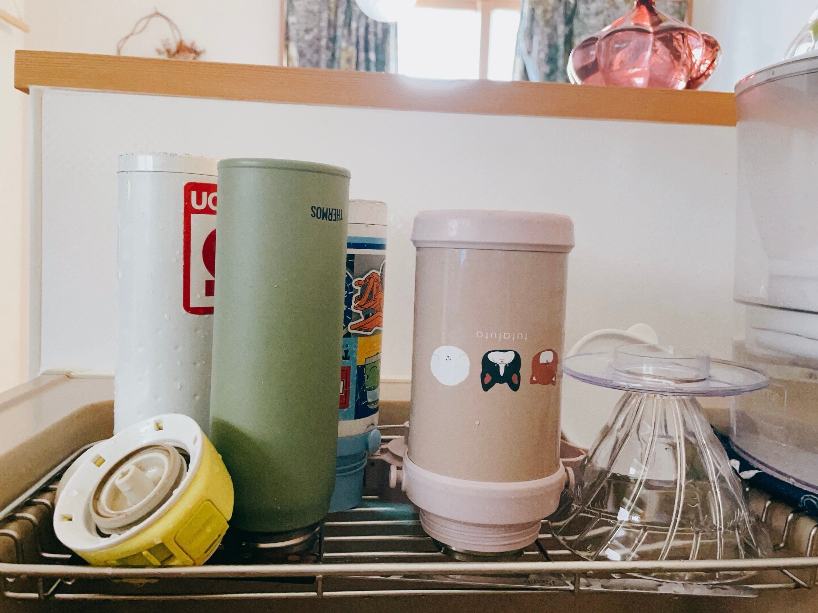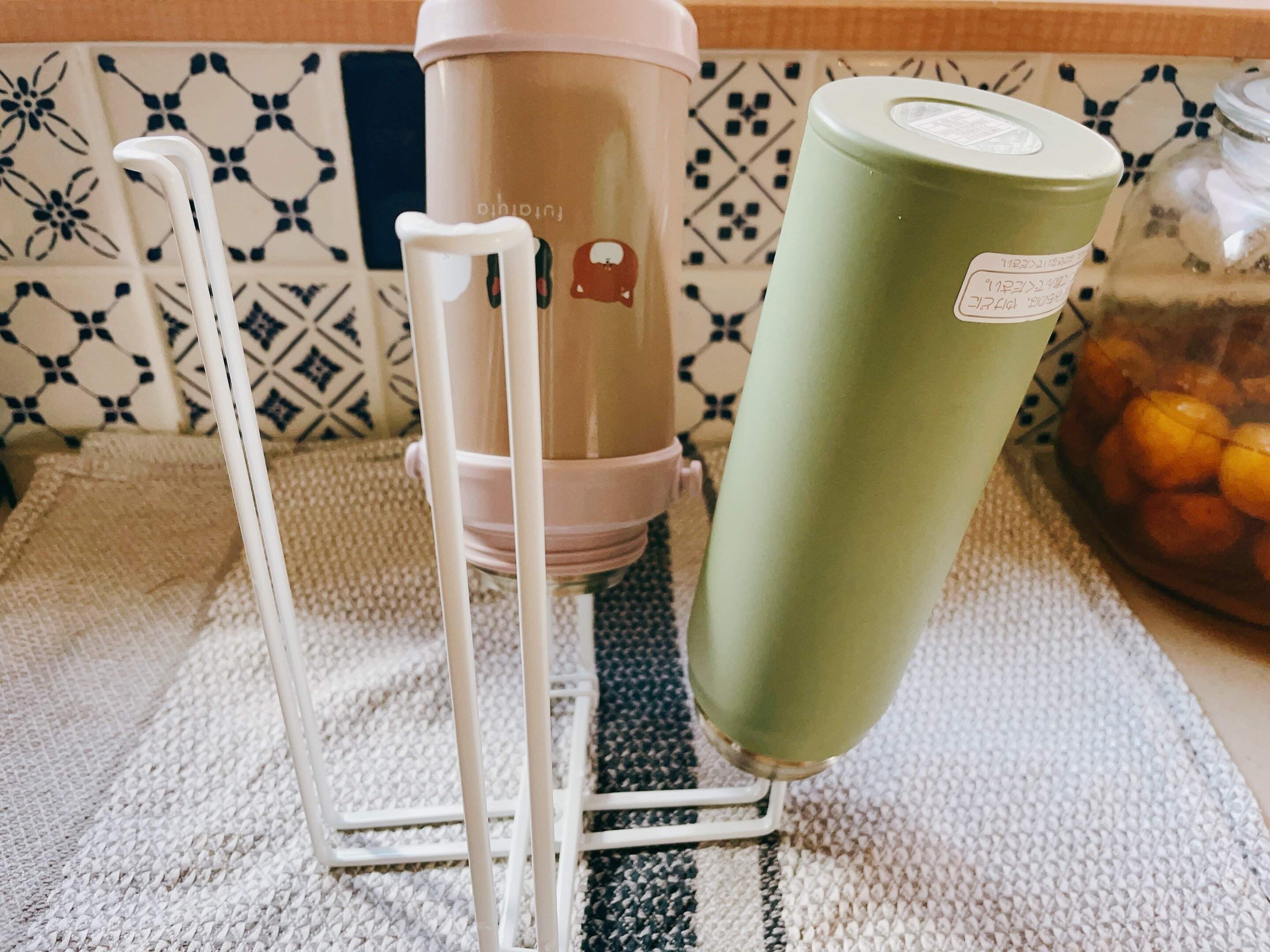 水筒だけでなく、食洗機に対応していないコップ、紙パックを浮かせて乾かすことができるのでとても便利なアイテムです。