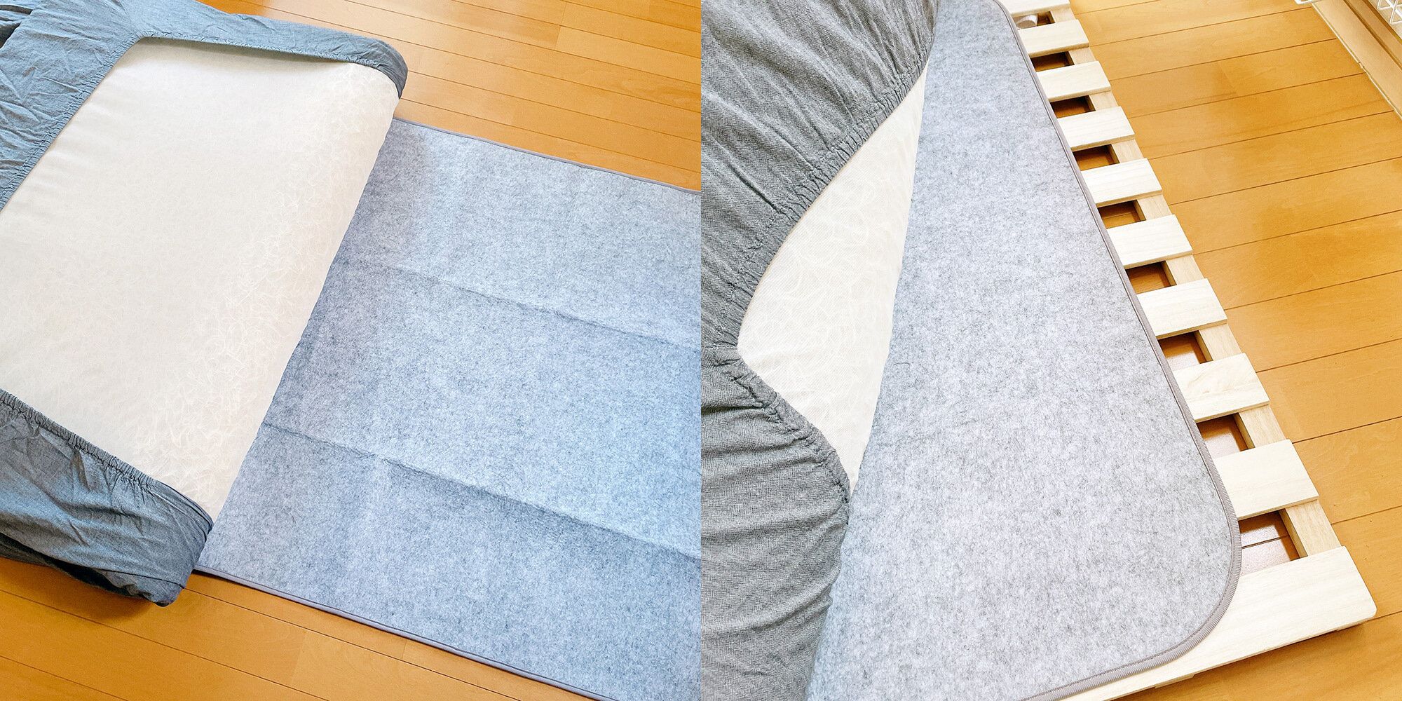 マットレスの下に敷いてもよいですし、マットレスとベッドパットの間でもよいそうです。