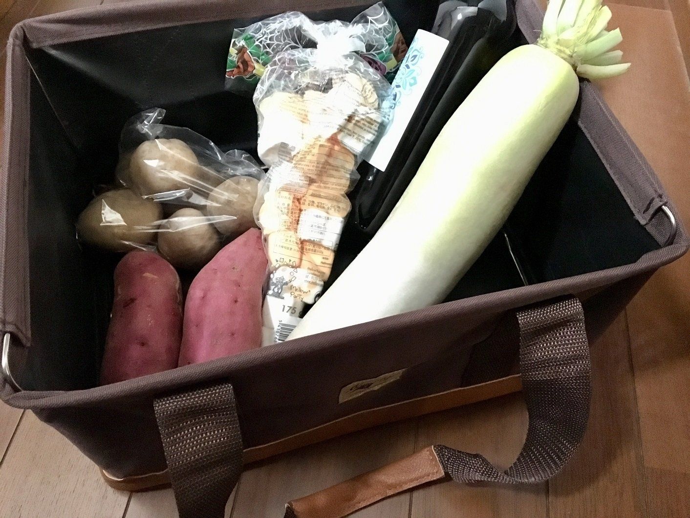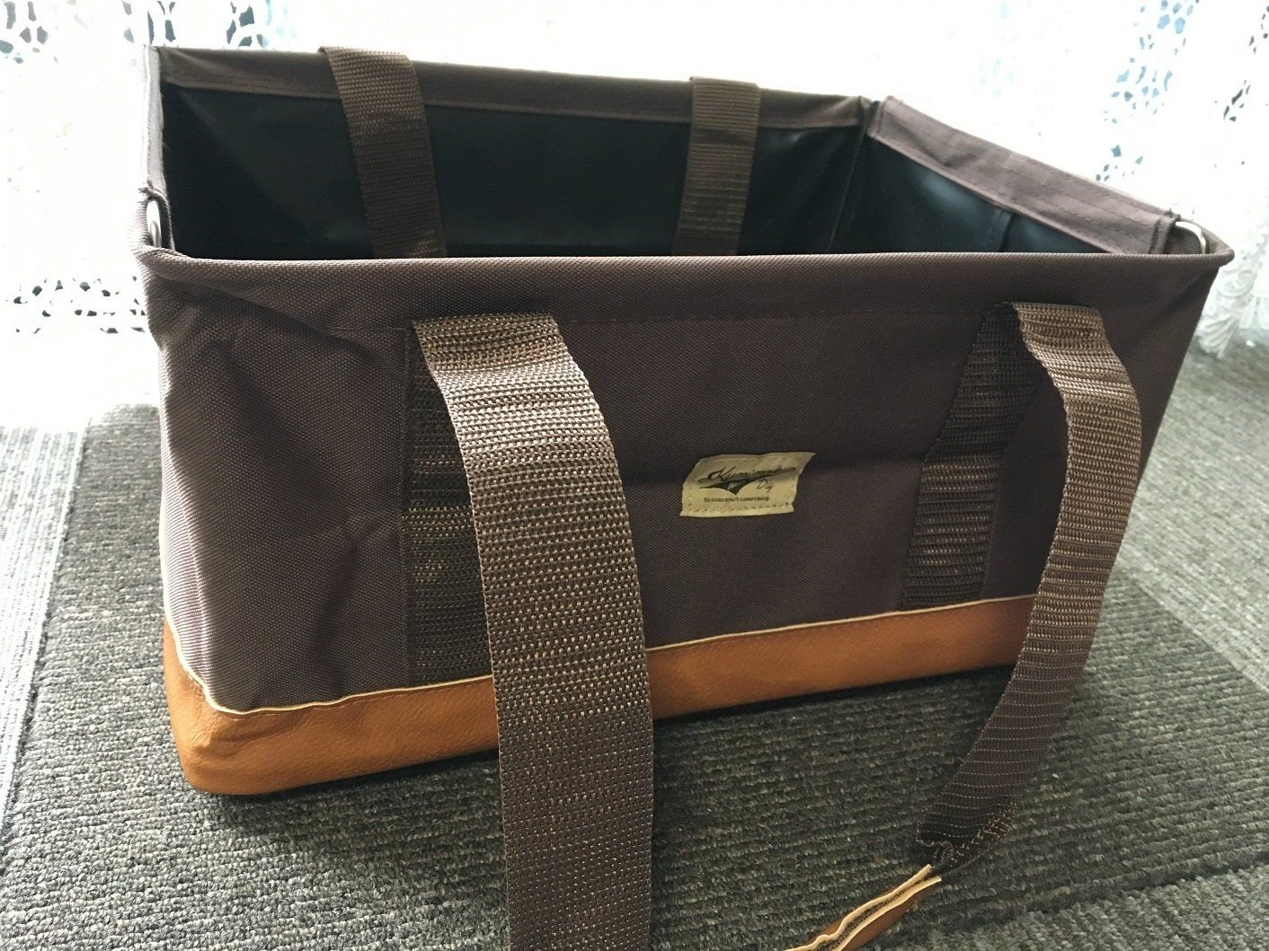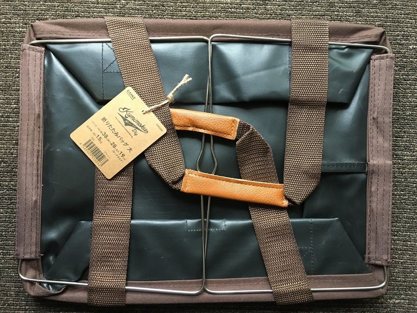 今回ご紹介するのは、カインズで販売されている「kumimoku折りたたみバッグ 大」。価格は998円(税込)です。全4色展開で、今回はブラウンをチョイスしました。