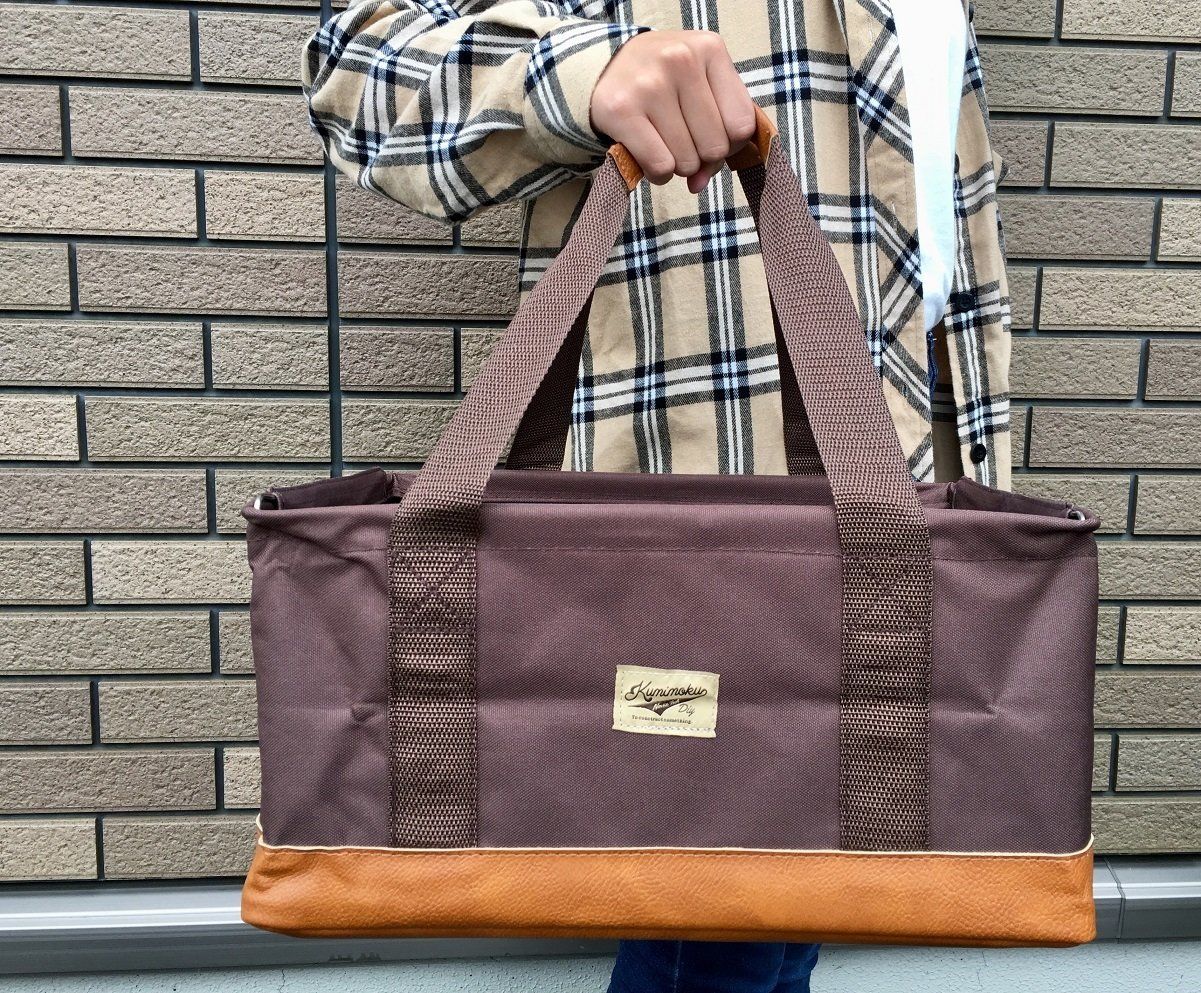 取手部分の長さも十分あるので、持ち運びしやすい!もともとこのkumimokuシリーズのバッグは工具入れなどとして販売されているものですが、十分ふだん使いも可能ですよね。