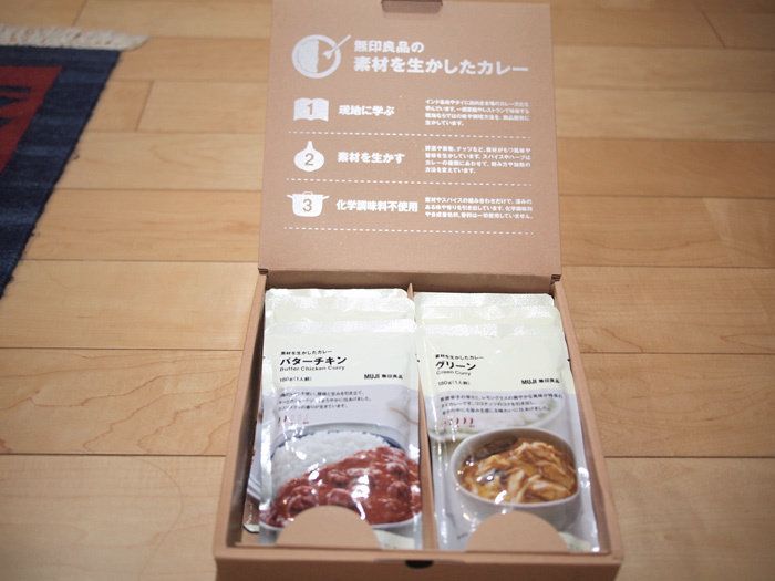 バターチキンカレー、ブラウンマサラカレー、グリーンカレー、スパイシーチキンカレー、辛くない国産りんごと野菜のカレー、キーマカレーの6種類が入っていました!子どもむけに辛くないカレーが入っていたのがとても個人的にうれしかったです!