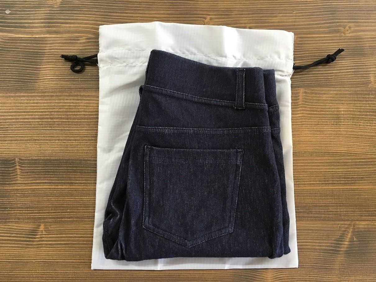 Sサイズは34×28cm。画像ではデニムパンツを4つに畳んでいますが、ボトムなら1枚、カットソーなら2~3枚は入ります。また、小さめのブランケットやバスタオも1枚なら入りました。