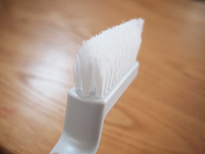 無印良品のタイル目地ブラシの最大の特徴はこの山切りカットされたブラシ!どんな溝にもうまく入り込むように研究されているようです。この不思議な形のおかげで力を入れなくてもスムーズにいろんな場所のお掃除ができてしまいます!