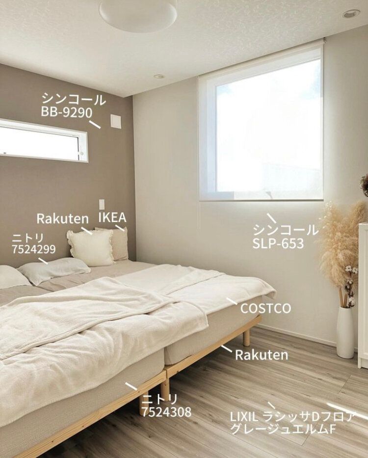 おしゃれなくすみカラーのインテリアで寝室を揃えたい時は「マルチすっぽりシーツ ダブル(WガーセMO SZ09 D)」(4,490円)と「枕カバー(WガーセWH SZ08)」(999円)がおすすめ!同じような色合いの商品でそろえると一気にセンスのよい寝室になります。汗をたくさんかく時期だとガーゼ素材も気持ちよく寝られそうですね。写真の寝室も、ニトリのボックスシーツについて質問をもらうことが多い人気商品のようです。