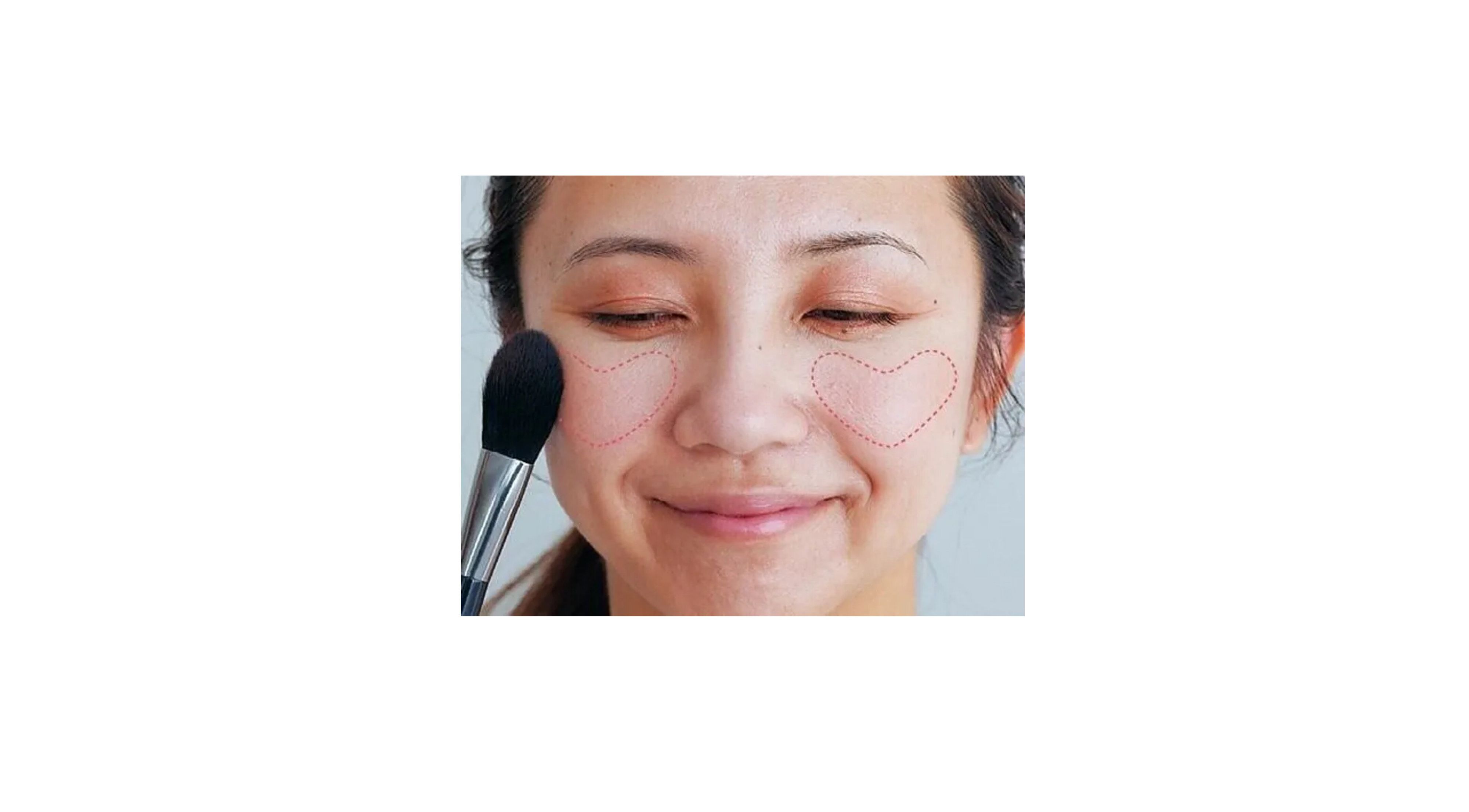 ブラシに(5)のピンクのチーク(下)をとり、頬骨の高い部分にハート形を描くようにのせる。顔全体の引き上げ効果も期待できる。