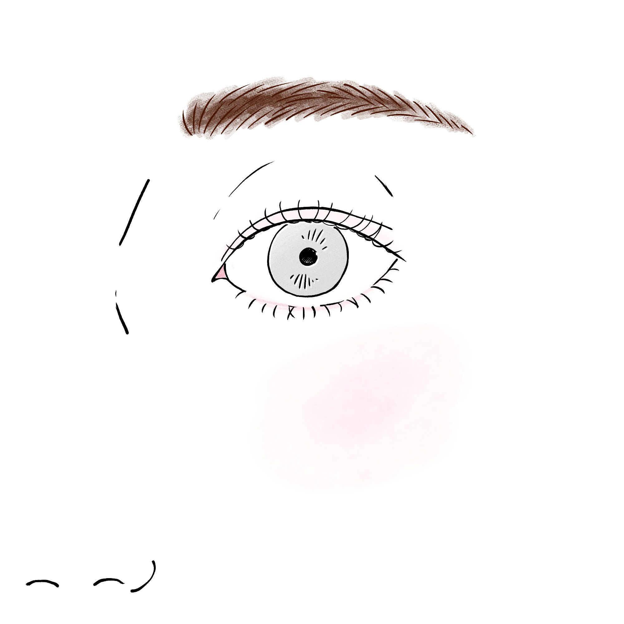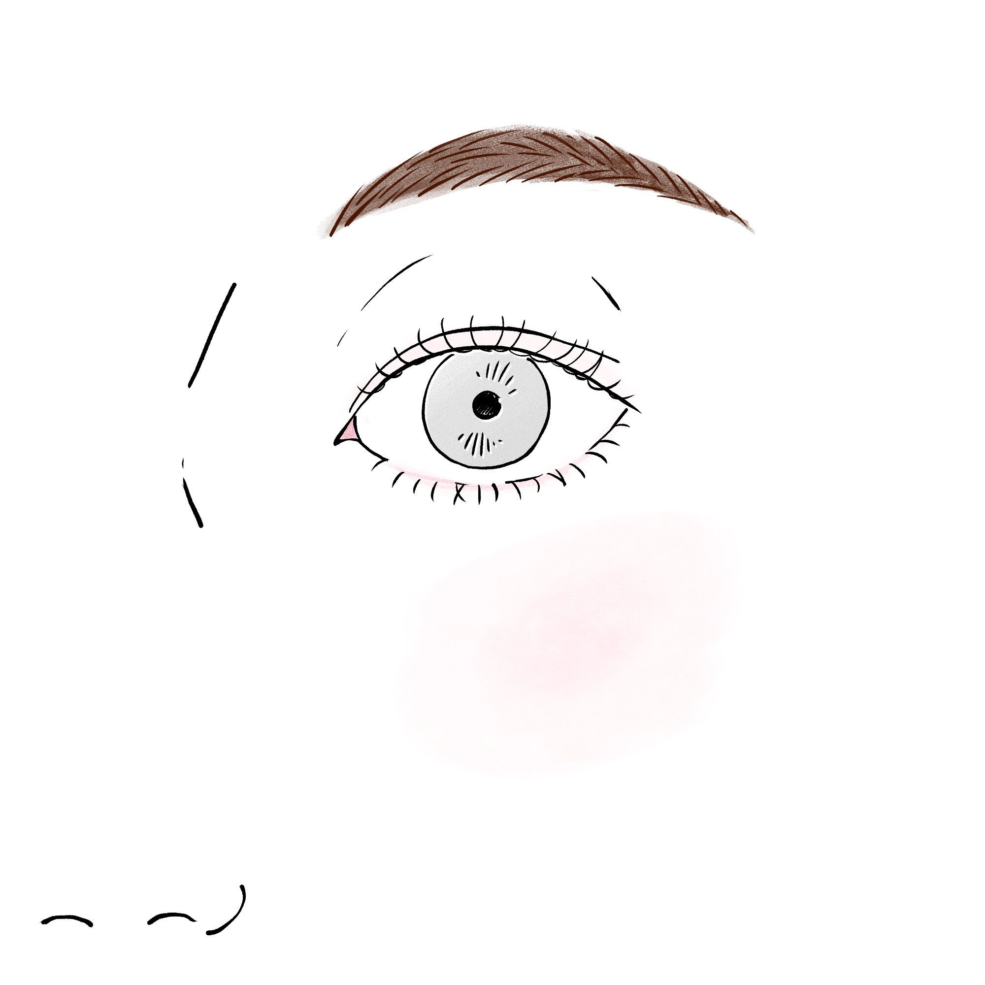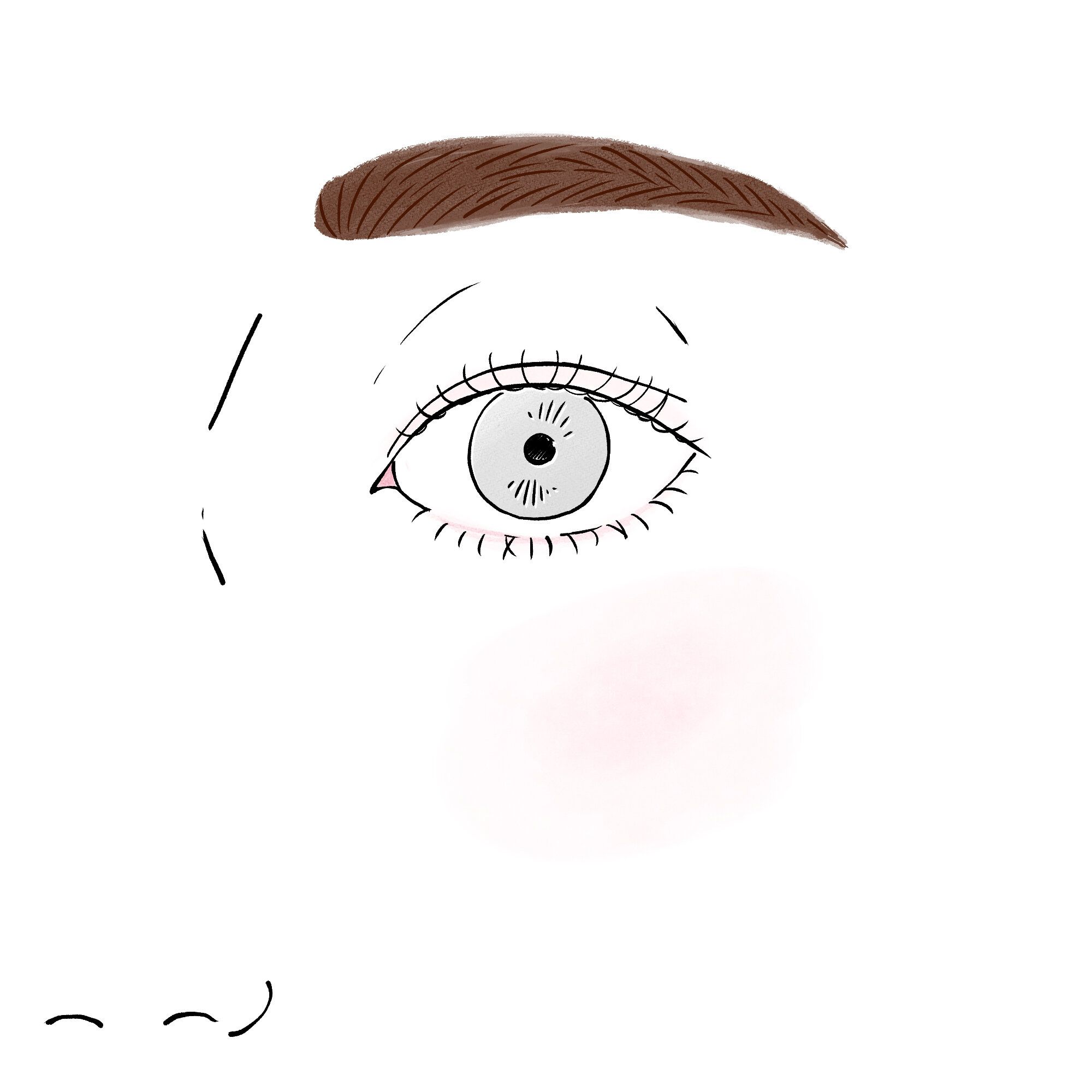 眉頭から眉尻まで、同じ濃さでベタ塗りした眉。これは柔らかめのペンシルだけで描き、描いたあとボカさない方にありがちな残念眉です。