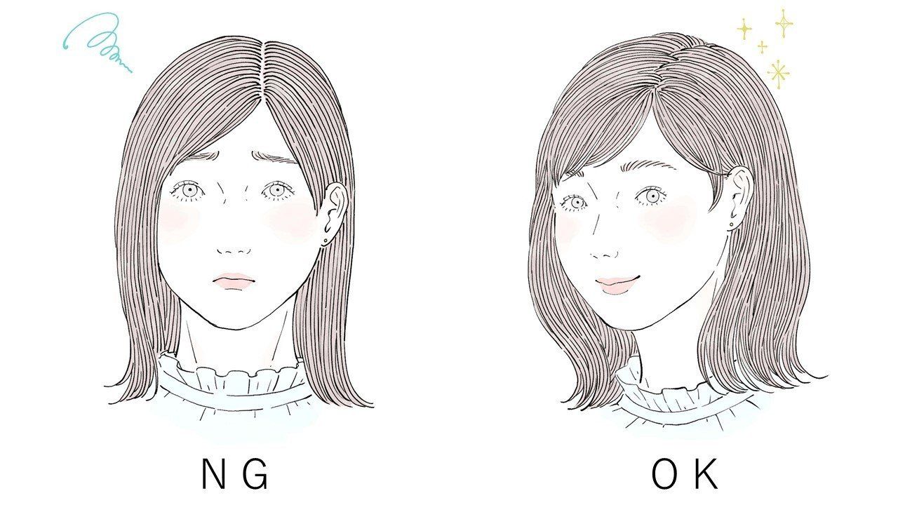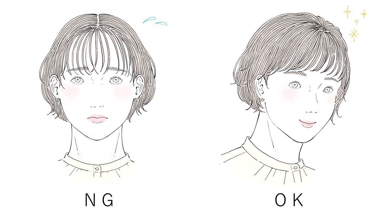 【前髪のポイント1】7:3はNG。分け目を隠す!