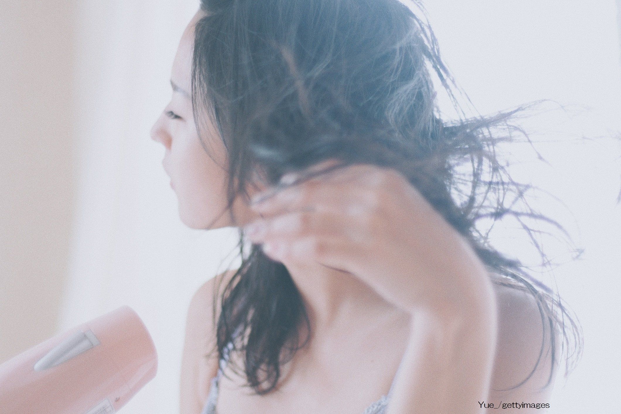 皮脂や汚れで毛穴が詰まってしまうと質の良い髪の毛が生えてこないので、頭皮の汚れを落としてから代謝が活発になる睡眠時間を迎えましょう。つまり、髪は夜洗うことが大事。朝は髪を軽く濡らし、これからお教えする方法でドライヤーを当てて、ふんわりさせましょう!