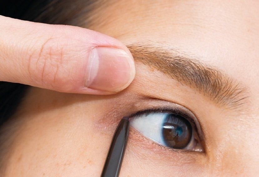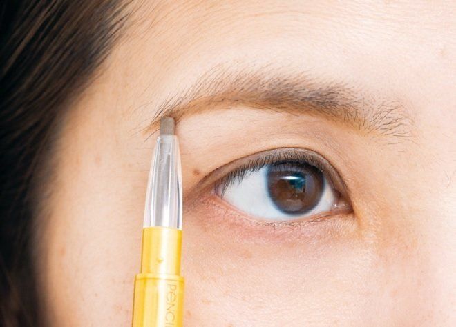 まずは眉ペンシルを用意。眉骨の下側のラインを眉頭から中央、さらに眉尻に向かって元々の骨格をなぞるように描きたしていく。