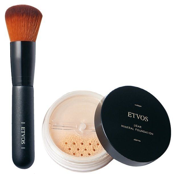エトヴォス ディアミネラルファンデーション(右)フェイスカブキブラシ(左)