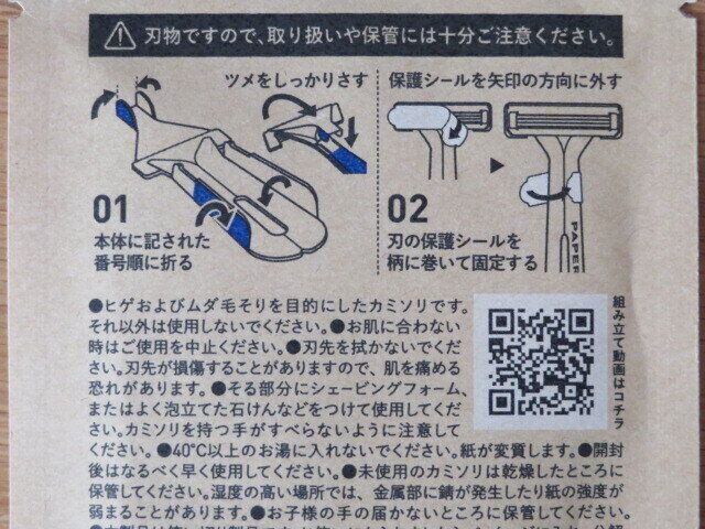 カミソリをひっくり返すと折る順番が1~6の数字でしめされています。