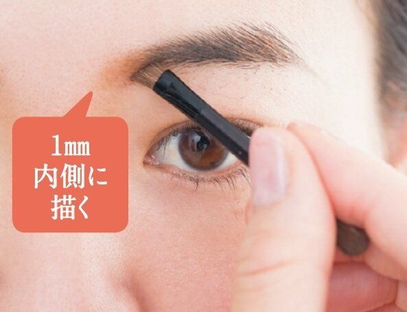 加齢とともにあいまいになりがちな眉下のラインを、細芯タイプのペンシルでしっかり描く。その際、本来の輪郭に沿って床と平行になるように描くと、やさしげな今っぽい眉になる。