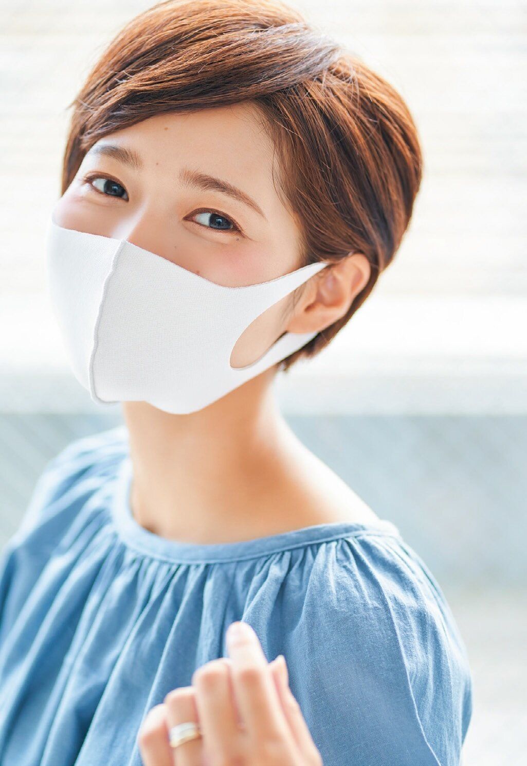 顔色が悪く見えがちなので、チークはマスクより上になる頬骨の上にのせて。特に気をつけたいのが目元。眉やアイラインは色選びや入れ方を工夫して、ソフトに仕上げるのがコツ。