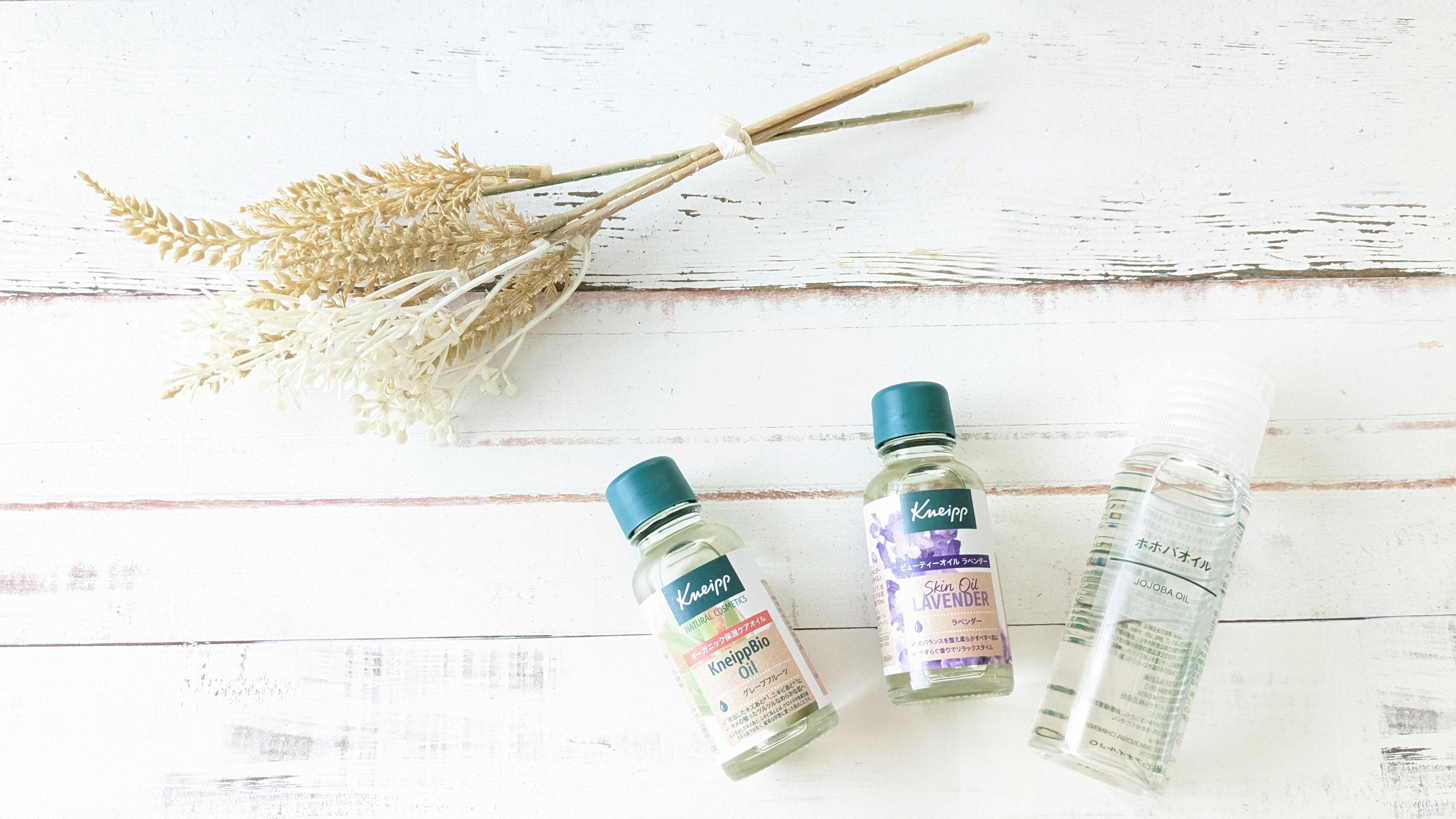 美容オイルも様々な種類がありますが、小さいサイズでも売っている商品を試して、気に入ったので使い続けています。どれもさらっとしてべたつかないので使いやすいです。