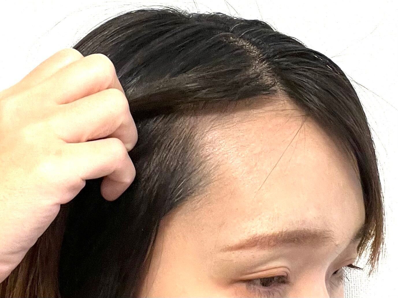 私は、おでこが広いので、おでこの部分を中心に使いましたが、髪の分け目が気になる方は、分け目に塗るとカバーしてくれますよ。