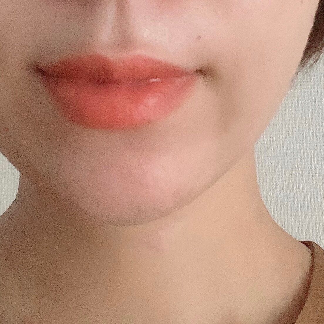 カラーリップは、口紅と比べると落ちやすいイメージがありますが、このリップは馴染みが良く色持ちするのもポイント。ちなみに、マスクの下につけ4時間ほど経った状態がこちら。