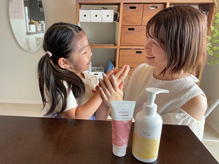 「長女は幼稚園でアルコール消毒する機会が多いようで、手の乾燥が気になります」というサンキュ!アンバサダー 北脇可奈子さん。