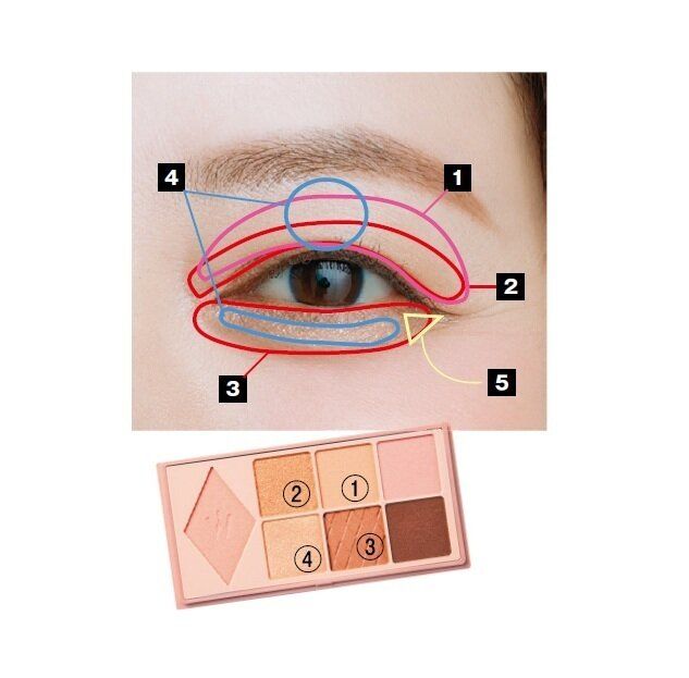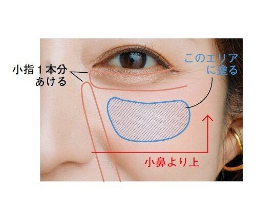 【4】(4)を黒目の上と、涙袋の高い位置に塗る