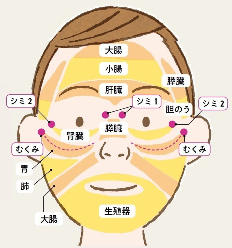 フェイスマッピングと照らし合わせ、どの臓器にあたるか確認。例えば“胃”部分なら食事を見直すサインです。