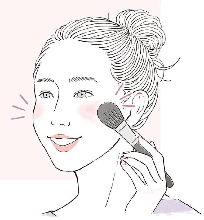 「口角を上げて笑顔をつくり、頰が高くなったところにふんわりブラシでのせればOK。血色感が出るのはもちろん、頰の位置を高く見せ、自然と立体感を強調してくれます」。