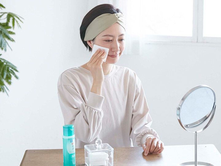 拭き取り化粧水として使い古い角質をケア。うるおいながら透明感も!