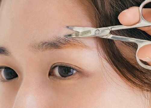 描き足すだけでなく、理想の形からはみ出る部分は眉ハサミで整えて。眉を描くときのように、1本1本バランスを見ながらカットして。