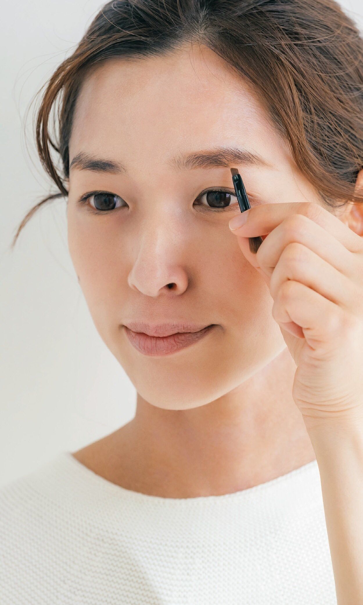 たとえ、黒髪だったとしても眉はブラウン系の方が若々しく見えます。グレー系はくすむお年頃なので控えて。